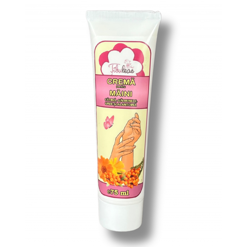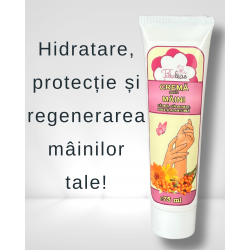 Crema pentru mâini cu Ulei de Cătină şi Gălbenele are o formulă ce conţine ingrediente naturale care au capacitatea de a reepiteliza şi hidrata pielea aspră şi uscată, predispusă la crăpături.
